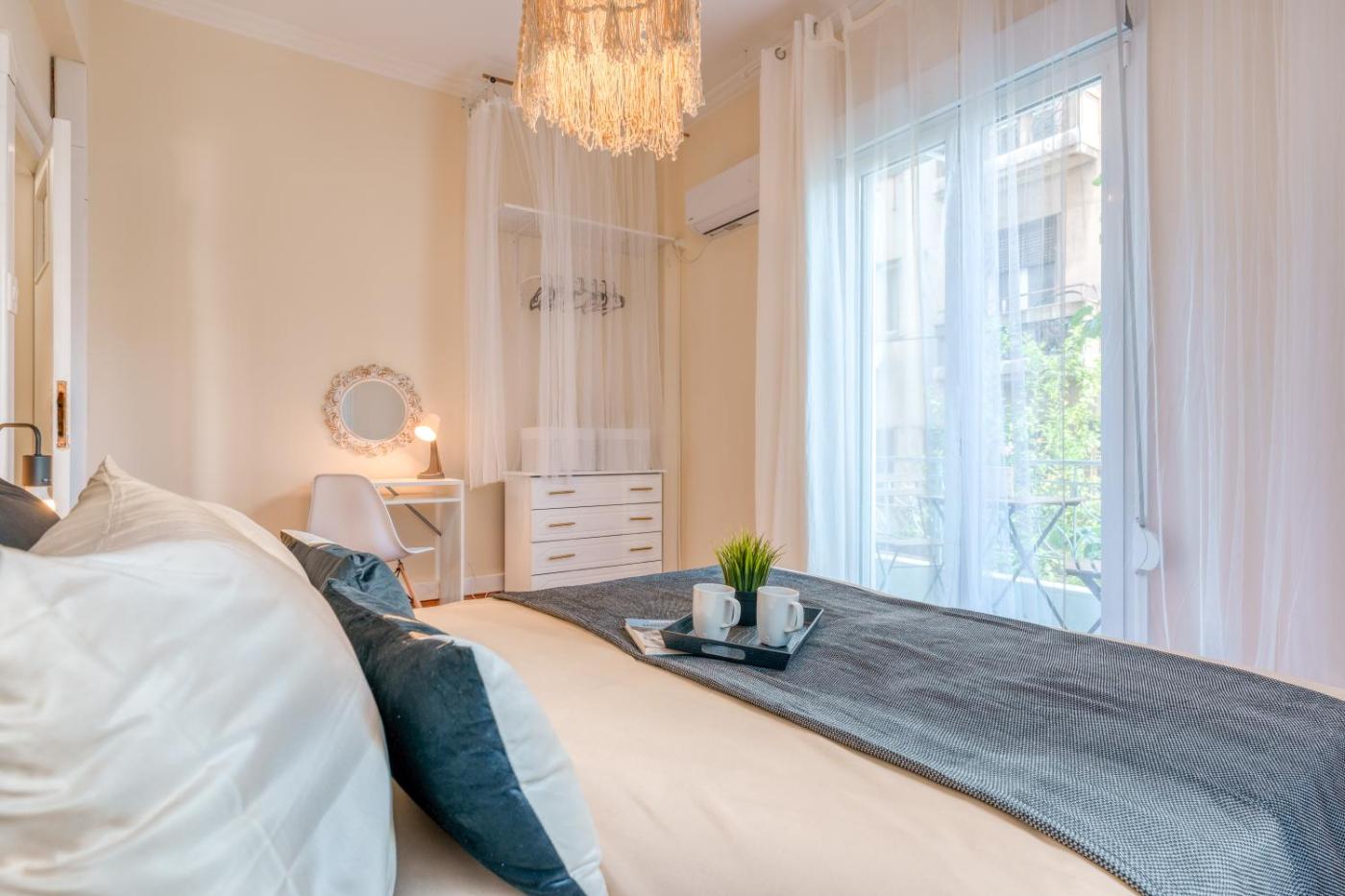 Four-Bedroom Apartment with Balcony. This spacious apartment consists of 4 bedrooms, kitchen, a terrace and 3 bathrooms with a bath. Meals can be prepared in the kitchen, which is equipped with a stovetop, a refrigerator, kitchenware and an oven. The air-conditioned apartment provides a flat-screen TV, a washing machine, a coffee machine, a dining area as well as city views. The unit offers 5 beds and 1 futon.