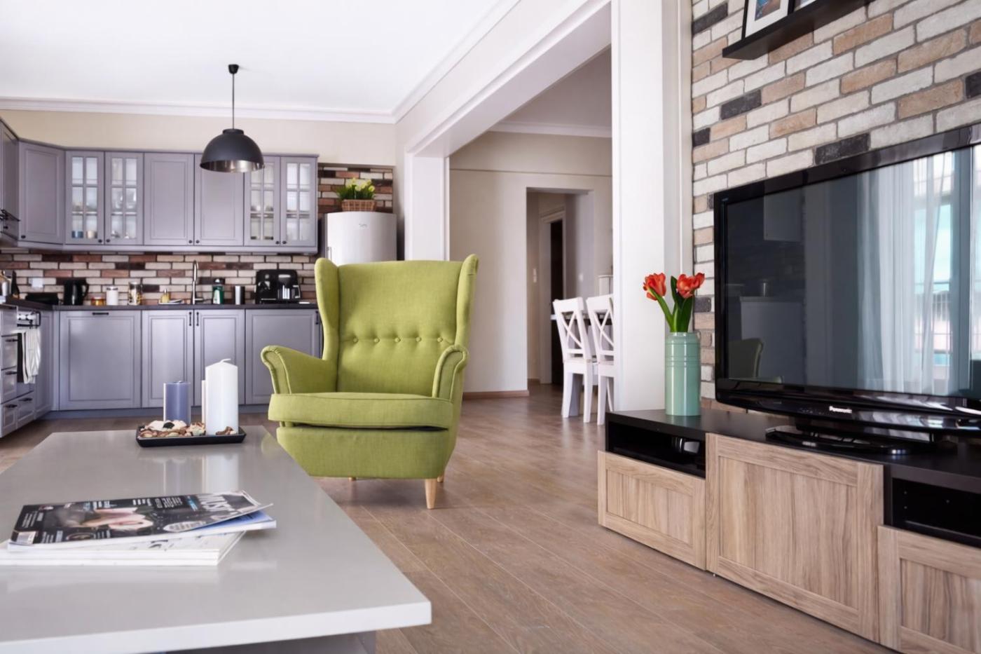 Three-Bedroom Apartment. Featuring a private entrance, this air-conditioned apartment is comprised of 1 living room, 3 separate bedrooms and 2 bathrooms with a walk-in shower and a hairdryer. In the well-fitted kitchen, guests will find a stovetop, a refrigerator, a dishwasher and kitchenware. The spacious apartment offers a flat-screen TV with streaming services, a washing machine, soundproof walls, a tea and coffee maker as well as city views. The unit offers 6 beds.