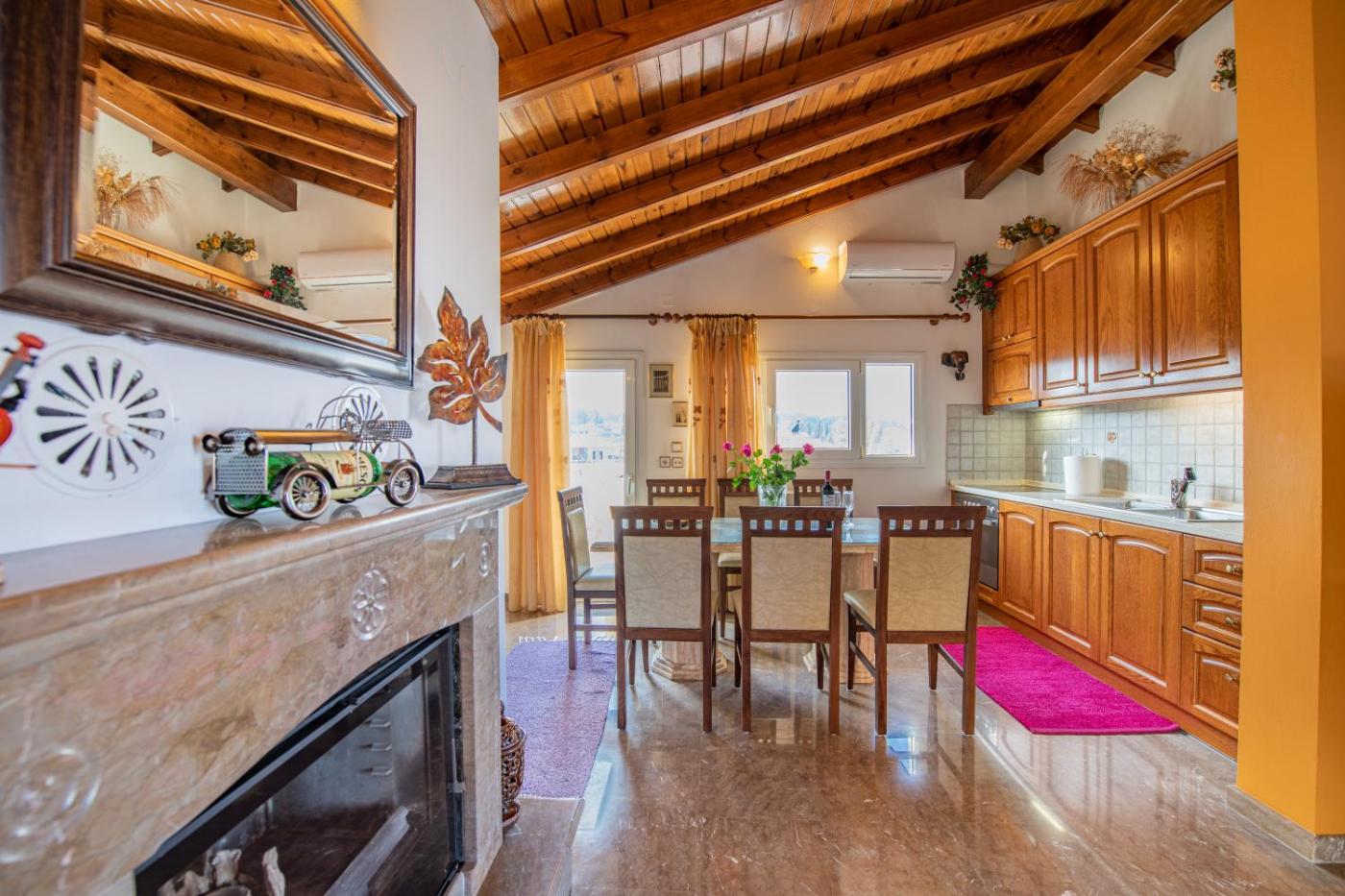 The spacious apartment with a balcony and mountain views features 1 bedroom, a living room, a flat-screen TV, an equipped kitchen with an oven and a microwave, and 1 bathroom with a shower. Guests can take in the ambience of the surroundings from an outdoor dining area or keep themselves warm by the fireplace on colder days. The apartment offers bed linen, towels and laundry service.